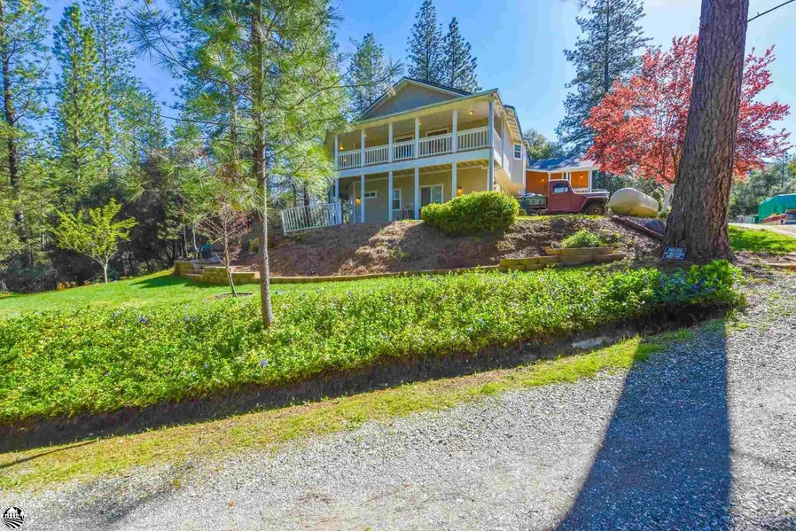 Escape to tranquility in this well-maintained home nestled on 2 private usable acres. Built in 2010, this spacious abode boasts four bedrooms, three full and one half bathrooms, and over 3200 square feet of comfortable living space. Step inside to find two primary bedrooms off the entry, each with generous closets and en-suite bathrooms. Gather in the inviting living room with a cozy pellet stove and enjoy the natural light pouring in from expansive picture windows. The chef's kitchen impresses with stainless steel appliances, granite countertops, and a breakfast bar, island, wine fridge, and walk-in pantry. Entertain formally in the dining room leading to a wraparound deck, offering serene outdoor moments. Downstairs, discover a versatile workshop/storage room or potential office, a full bathroom, and an oversized 2-car finished garage. Embrace sustainable living with solar panels and Tesla batteries, and prepare for emergencies with a whole house generator connection available. Gardeners delight in multiple outdoor areas, while ample space invites the construction of an ADU or barn. Trails meander through the established fruit trees, and natural landscaping creating a serene environment. This secluded haven offers both peace and convenience to shopping, various lakes, Pinecrest, Dodge Ridge, Columbia State Park, and downtown Sonora.