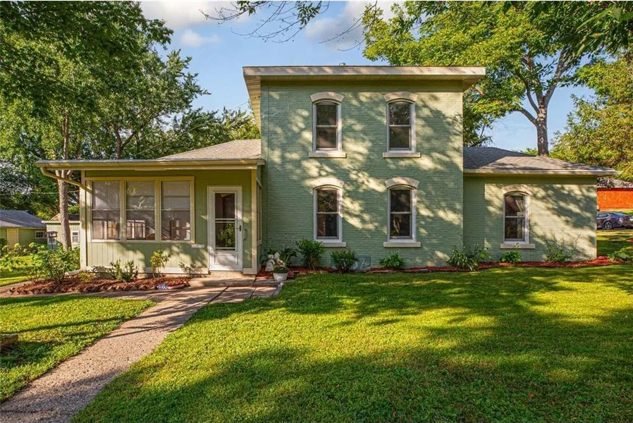 This beautifully maintained 3-bedroom, 3-bathroom brick home is full of character and modern updates. Situated on a large corner lot with a 2-car detached garage, it offers the perfect blend of historic charm and everyday convenience. Step into the inviting enclosed front porch with its brand-new wood ceiling before entering the spacious main level. Inside, you’ll find a bright living room featuring a cozy gas fireplace and a stunning exposed original brick wall, with access to a large, freshly stained private deck, perfect for entertaining or relaxing. The kitchen offers ample storage and flows into the informal dining room, while a convenient main-floor laundry room adds functionality. This level also includes a bedroom, an updated full bathroom, and a versatile den. Throughout the main floor, you’ll appreciate the all-new flooring and fresh paint. Upstairs, two generously sized bedrooms and a half bathroom provide comfortable living space, while the basement offers an additional half bathroom and