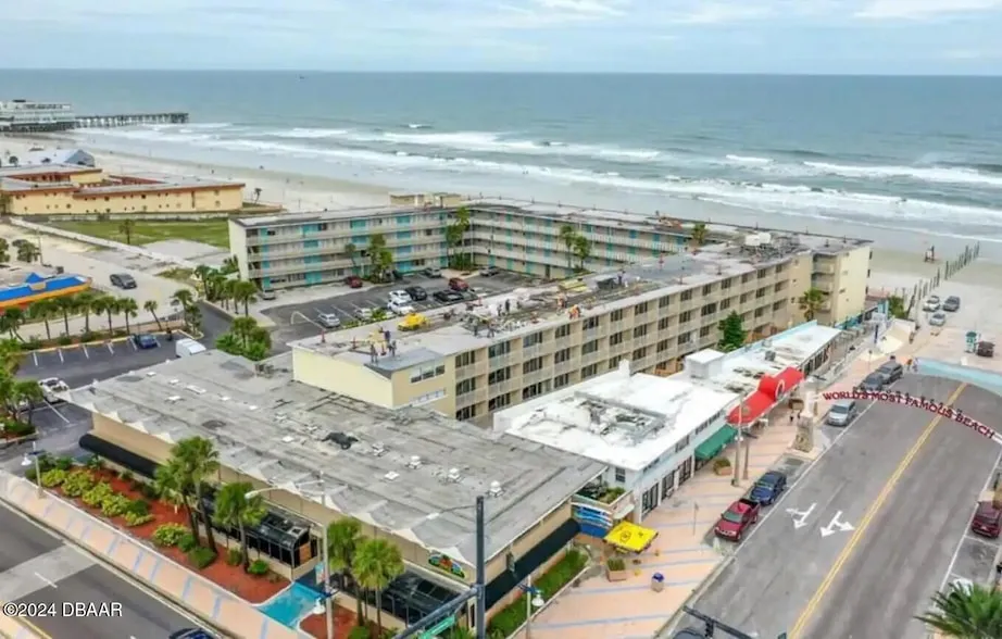 Beachfront Condotel with no rent restrictions. Rent it out or have your own beach escape. Strong two year rental history with average of 20k annually income. Sellers are willing to mange and clean for new owners if needed as they live in the area. New inside paint and under the sea decor. ALL assessments are paid in full! There are no further knowledge of assessments. HOA includes electric, water, sewer, trash, grounds and pool maintenance, monthly pest control, insurance, cable, and fiber internet with WiFi. Move in ready and fully furnished with a queen bed, twin over twin bunk, newer couch that folds out to a bed, table and chairs, smart tv, and fully supplied kitchenette with two top flat burner, microwave, and oversized fridge. Brand new beachfront pool, seawall, and shower with steps to the beach. Just bring your toothbrush. Location is prime and key! Parking passes included and you can walk to everything Daytona has to offer within minutes: the pier, restaurants... ice cream, karaoke, Vomitron and slingshot, splash pad, OceanWalk, bandshell.... Your neighbors on each side work for the management company and you are steps from an elevator. There is no driving on the beach in front of the building for less noise and worry free beach time with the kids. Drive on beach access is adjacent to the building. Square footage from tax rolls. All info intended to be accurate but can't be guaranteed.