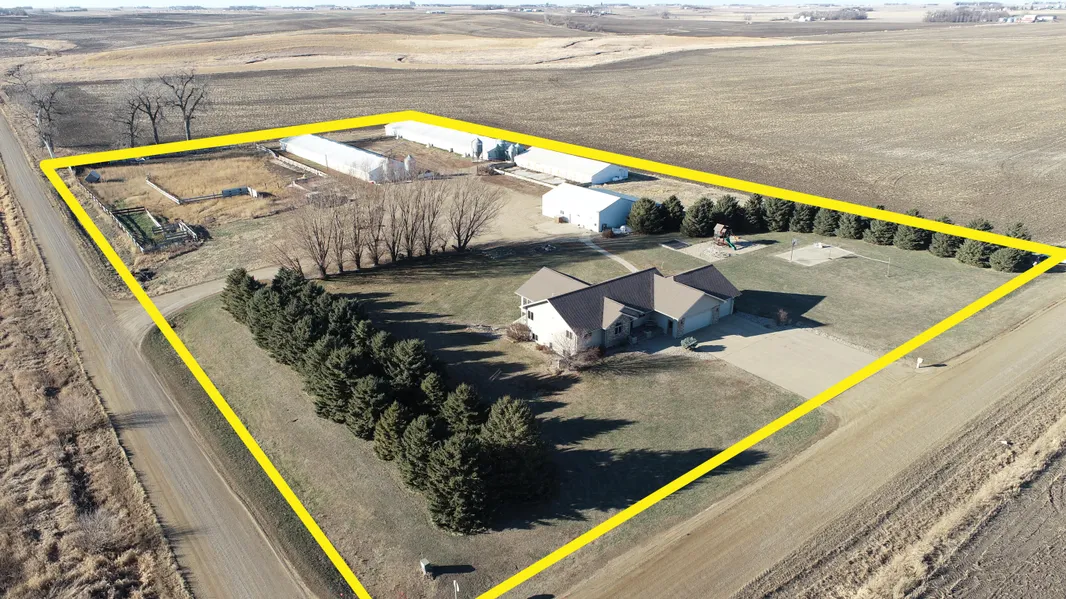General Description: According to the Lyon County assessor, this excellent income producing acreage consists of 6.75 gross acres!! WOW! If you have been searching for a property to call home then be sure to make plans to purchase this property today! It is not often that you can purchase an income producing property of this nature!! This property features an updated Ranch style home which was built in 2000 with a heated and insulated 3 stall attached garage!! The floor plan of this home has a very open concept with a very nice layout! The main floor consists of the kitchen, which features an island and custom oak cabinetry, dining room, living room, (which leads out to a enclosed sun porch), large entryway with a full locker system for storage, master bedroom with a large walk-in closet, (which also features the main floor laundry), updated bathroom with tiled shower, whirlpool tub, which also includes access from the master bedroom! The lower level of this home consists of 2+ bedrooms, a large family room with a propane fireplace and walk out access to a concrete patio, a bathroom with shower and exterior access and a storage room which also includes laundry hookups for a lower level laundry!! This home has vinyl siding and asphalt shingles and Anderson windows. This home is well maintained and will not disappoint!! The outbuildings on the property consist of 2 separate 1000 Head hog finishers, which were both built in approx. 1998! These buildings both have had several updates in recent years! Both buildings had new roofs installed in 2017, new controllers installed in 2018 and new curtain machines installed in 2018! Both buildings have tube feeders and 214 ton Choretime bulk bins. This property also features a 36 x 54 machine shed which is insulated and heated and was built in approx. 1998! This property also has a generator which will be included with the property! This property has a well established grove and would make an excellent property for you or your family to establish your family's legacy for years to come!! Seller will have the septic system inspected.