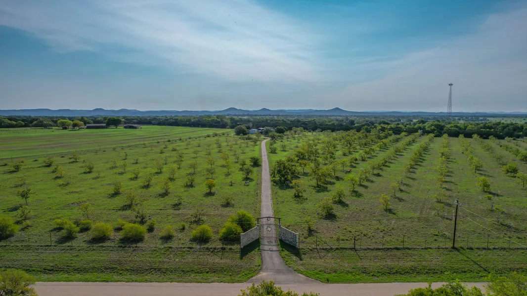 So many possibilities on this unrestricted property! Ever wanted a pecan orchard of your very own? Here are 22 acres, completely high fenced w/ electronic gate entrance, blessed with +/- 450 pecan trees (Nocona and Native pecans) and an additional +/-65 Freestone peach trees that await your care. This orchard is at the perfect stage to allow you to hone your pecan picking skills before the trees reach full maturity. Property boasts two wells:1 for the single mobile home with a wrap-around porch & outdoor fireplace; the 2nd well supplies the irrigation lines that run amongst the trees. There is a flex building with heat/air, 21' x 18' main room; it also contains a concrete tornado shelter, 21' x 8'. There are multiple covered parking areas for vehicles or farm equipment allowing protection from the elements. Ease of access to Bandera Hwy and room to build a 2nd dwelling make this plot of land a must have for those who want the country found peace within a short drive to Kerrville or Bandera. Priced to reflect potential income; per exp. orchard farmer-at full maturity, this size orchard potential inc $100,000/crop. It's also the perfect location for an RV park!