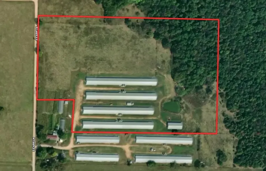 4 Wood truss, drop ceiling broiler houses with natural gas on 22 acres and Simmons contract. Well maintained, single-owner operation that has performed well since 2005. Water and gas for new home are at the property line. Plenty of room to build more broiler houses! Option to buy dwelling, older chicken houses and additional 20 acres if desired.