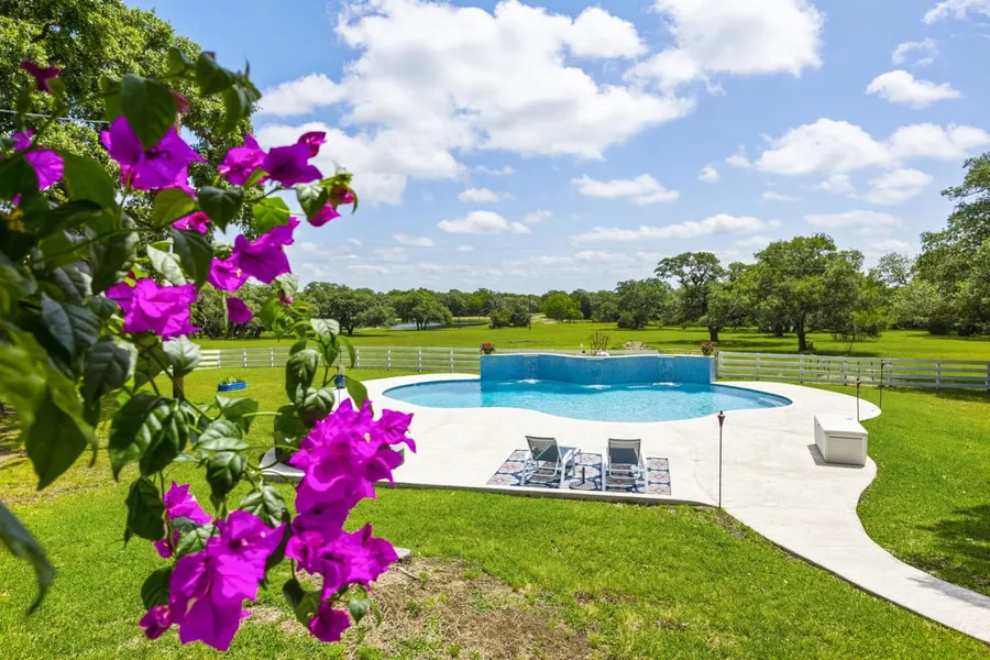Wait until you see this 22-acre retreat with a 3/2 Bardominium between Columbus and Weimar, Tx! Upon entry to this renovated Bardominium, you will be greeted by a spacious and inviting living area on one side and a large formal dining area. There are 3 spacious bedrooms and 2 bathrooms, the present owners are using the 3rd bedroom as a study. The kitchen provides plenty of cabinet space plus an informal breakfast dining area. Enjoy a cup of coffee on the covered deck in the park-like setting. Everyone will enjoy the beautiful 3-year-old, 44' X 24', saltwater swimming pool large enough to accommodate a crowd. Recent updates include paint inside and out, LifeProof luxury plank flooring, an updated kitchen, backsplash, quartz countertops, quartz farmhouse sink, and stainless appliances. The Property has a pad site with a second water well and septic. Recent aerobic septic system, and hot water heater. Perfect for full-time living or weekend use. Owner/Agent
