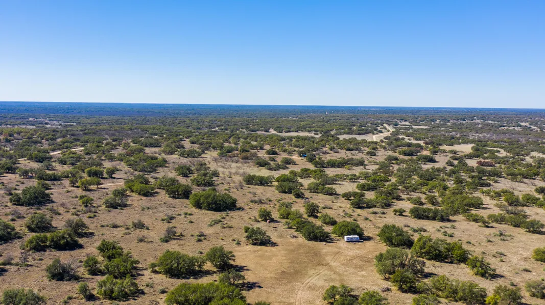 The terrain on the ranch is gently rolling with a nice covering of live oak and mesquite trees. Two acres of land have been cleared around the camper.