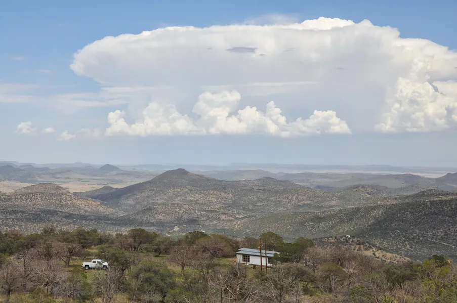 Skyline Ridge Ranch is located in the heart of the Davis Mountains, a Sky Island of the Chihuahuan Desert with elevations ranging from 6,800 feet to 7,100 feet. This is a high ridge with wooded canyons creating some of the most scenic bluffs, rocky outcrops, canyons, meadows, and mountains in the region. This is ponderosa and pinyon pine country, huge oaks, madrone, and lush grasslands. The central geologic feature on the ranch is the spine of Paradise Ridge which you can follow all the way to Mt. Livermore located at 8378 feet. The views are stunning and overlook the most spectacular scenery in the entire Davis Mountains- Livermore, Sierra Viejas, Chinati, Paradise, Cathedral, and Haystacks to name a few. Mountain ranges beyond Alpine and Marfa, the Glass and Chinati Mountains (30 to 50 miles distant) can be seen clearly on most days.