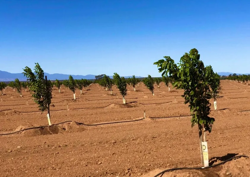 DESCRIPTION: This unique property is 220 total acres, approximately 160 acres are planted to walnuts. The orchard was deep ripped, then planted in the spring of 2021 to ninety-six percent (96%) Chandler walnuts and four percent (4%) pollinizers on bareroot clonal Vlach rootstock with 27' x27' spacing.