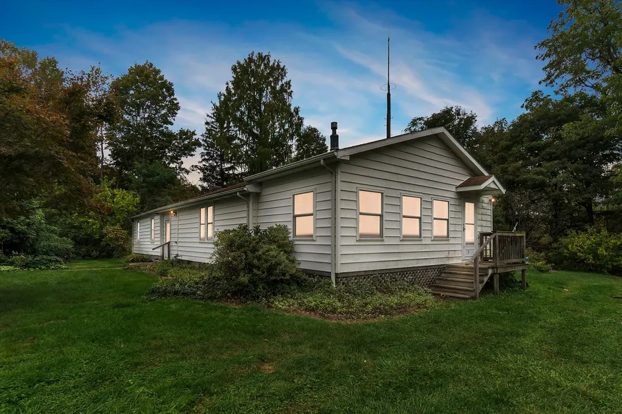 Country living just 2 miles off the highway. This 3 bedroom 2 bath home is every outdoorsman's dream. 8.69 acre property that leads down the wooded hill to approximately 400 feet on Conneaut Creek. There is a well house, a well in the bank barn and 2 others on site. Living room has a cathedral ceiling with a gas burning stove. Dining room has a wood burning stove and beautiful built-ins. The sunroom is perfect for family gatherings or a morning cup of coffee. This home has plenty of unique charm. Electrical has been updated and the furnace is newer. Call today to schedule a showing. Be sure to bring your hiking boots and take a stroll down to Conneaut Creek!