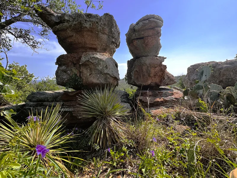 Some of the most impressive features of the property are the incredible long-distance views. With a vertical relief of almost 250 feet from the creek bottom to the 1619 foot high peak, the panoramic views stretch for over 25 miles. Surrounding peaks, including Bear Mountain, Hickory Mountain, and Bachelor Peak, along with distant views of the Llano River valley and the town of Llano, provide endlessly fascinating and varied vistas.