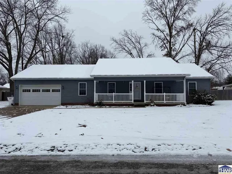 Welcome home to this charming 3 bedroom, 2 bath ranch that’s move-in ready and full of character! Enjoy relaxing on the spacious front porch or hosting summer cookouts on the back patio. The fenced backyard is perfect for kids, pets, or a little gardening. Inside, you’ll find a large living room with vaulted ceilings—ideal for entertaining—and a fully applianced kitchen with a walk-in pantry. The dining room offers plenty of space for family gatherings and holiday meals. Down the hall are three comfortable bedrooms, including a master suite with a walk-in closet. The oversized 2-car attached garage provides plenty of room for vehicles and storage. Built less than 10 years ago, this home offers modern comfort in a peaceful neighborhood—come see it today!