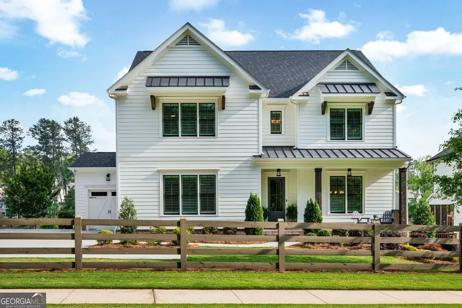 Welcome to the home that has it all luxury, location, and lifestyle. Nestled in the highly sought-after Ellis community, just minutes west of the vibrant Marietta Square and located within the desirable West Cobb school district, this 5-bedroom, 4-bathroom stunner is where refined design meets everyday ease. As you come down the shared driveway, you're greeted with a quiet, welcoming approach that reflects the neighborly charm of this community. Built in 2020 by the esteemed Waterford Homes, this property is a modern masterpiece with timeless appeal. Step inside to find gleaming hardwood floors, plantation shutters, and designer finishes throughout. The open concept main living area is light-filled and inviting, anchored by a bright, airy living room that offers serene views of the picturesque community pond. A formal dining room sets the stage for elegant entertaining, while the oversized quartz island and chef-inspired kitchen deliver everyday function with elevated style. Need a flexible layout? The main-level bedroom with adjoining full bath is the perfect guest suite or office escape. Upstairs, the spacious primary suite is your private sanctuary complete with a soaking tub, oversized mosaic-tiled shower, dual marble vanities, and a dream walk-in closet with custom built-ins for your inner fashion lover. Two additional bedrooms share a stylish Jack and Jill bathroom, while a fourth upstairs bedroom enjoys privacy and access to another full bath. Step outside to enjoy double decks with tranquil pond views ideal for morning coffee, evening wine, or simply soaking in the peaceful surroundings. The full daylight basement is ready for your personal touch, while the 3-car garage including a boat door and irrigation system check every practical box. Ellis offers an unmatched lifestyle with amenities including a clubhouse, resort-style pool, tennis courts, pickleball courts, and scenic nature trails. Whether you're casting a line in the pond or hosting on the back deck, this home invites you to live, relax, and thrive.