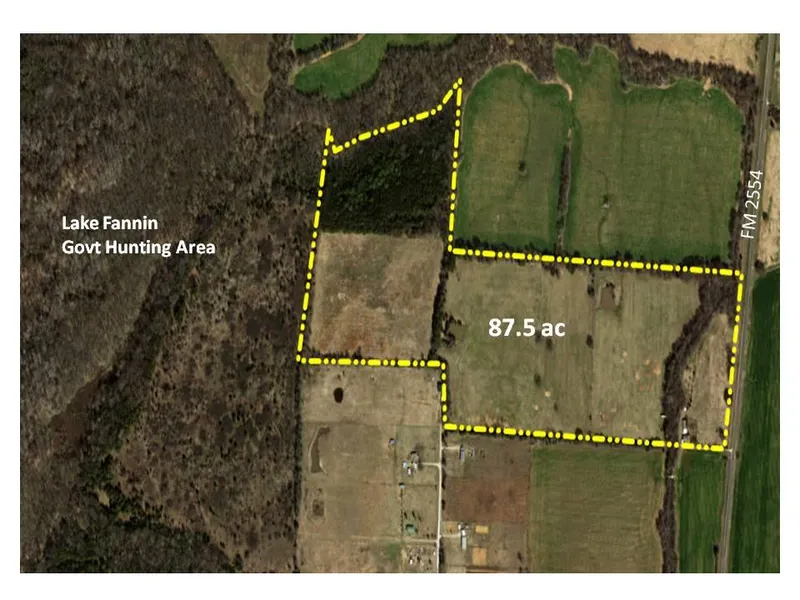 A Hunters Paradise with Deer, Hog, Turkey on 87.5 acres that borders Lake Fannin Govt hunting grounds. An 8 ft deep creek with running water and bridge that protects & hides the hunting area. Pastures are fenced and cross fenced, one area of heavy thick woods. Pasture for cattle, horses or your live stock with good coastal grass you can graze or bail & 2 stock ponds. House has been vacant for 7 years. All utilities are off. The kitchen floor needs help. The house just needs that hunting cabin look added or new paint and flooring. 2 car garage with openers, large 30 x 30 shop, old big barn for your tractors or storage. Flood Plain is approx. 30% +- of property near the creek. There is a lot of potential here.