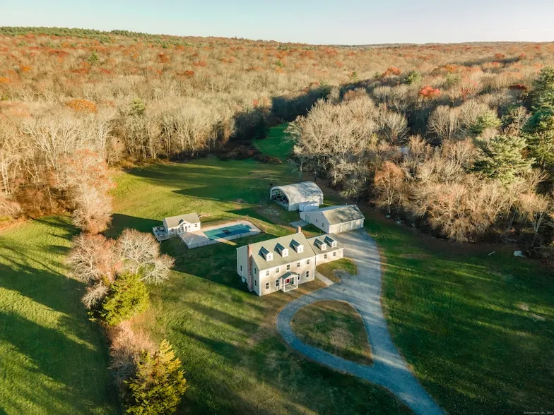 This stunning custom 4-bedroom Colonial sits on 20.3 acres in the charming town of Griswold, CT; this well-maintained country home provides the perfect blend of rustic charm and elegance. The oak hardword floors throughout this home combines warmth and beauty with easy maintenance, a large kitchen that includes a granite island and coffee station, a dining room for everyday living, and a formal dining room for special occassions. The spacious living room with its marble fireplace connects to a cozy family room perfect for relaxing. The expansive three seasonal porch allows you to enjoy the outside all year round. Upstairs contains the primary suite with ample space and private amenties together with three other bedrooms, laundry area and a Jack-n-Jill bathroom. The walkup attic with its dormers and gables make for the possibility of finishing off another 1400 sq. ft. The basement has a large recreational area. Other features include an attached 2 car garage and a detached 6 car garage with a separated heated bay, concrete pad (40' x 40') for storing of boats and recreational vehicles. The Pool House to the inground salt water pool is complete with an electric Sauna, changing room, space for indoor activities, and a deck to capture all the breathtaking views.