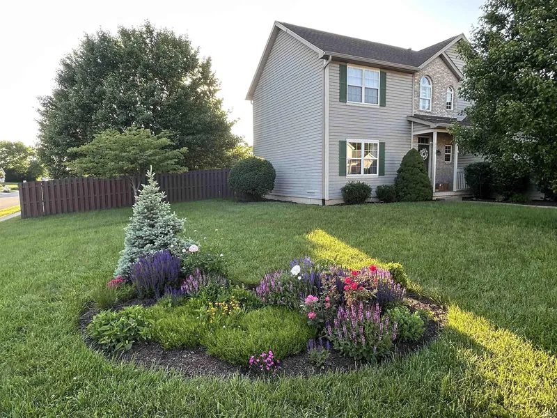 Welcome to this two-story traditional style home with a finished basement and offering plenty of functional living space. This home is situated on a spacious .33-acre corner lot with a privacy-fenced backyard and a large open deck for outdoor enjoyment. The large family room has a gas/log fireplace that creates a warm and inviting central gathering space. The eat-in kitchen, with updated appliances and abundant storage, naturally flows into the main living areas. The oversized primary bedroom features a vaulted ceiling. The en suite bath includes a full soaking jet tub, separate shower, walk in closet, and a raised double vanity. The convenient second-floor laundry eliminates carrying loads between levels. Finished lower level has a large recreation room, ideal for a home theater, fitness space, game room, or office. Updates include new carpet in Aug 2025, roof replaced in 2020. HVAC system installed in 2019. Garage door opener and controls replaced in 2025. The home is close to Purdue University making it ideal for anyone seeking convenient access to campus.