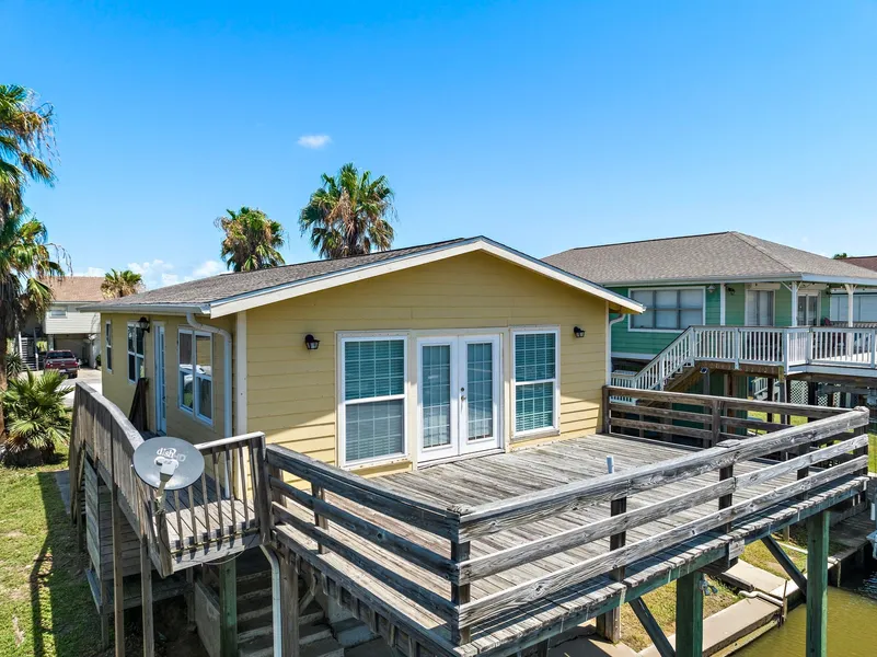 Create your perfect canal home in the ever-so popular Sea Isle subdivision! This inviting and comfortable 3-bedroom, 1-bathroom home offers an open concept living, dining, and kitchen area that provides views of the canal and easy access to a large deck, perfect for outdoor entertaining. Inside, the kitchen features stainless steel appliances, quartz countertops, and a subway tile backsplash, creating a sleek and stylish space for cooking and gathering. The bedrooms can be found at the end of the hall, with a shared bath. The ground level is spacious and features a convenient outdoor shower, ideal for rinsing off after a day on the water. With room for improvement and the opportunity to add your own personal touches, this home has great potential. This house is priced so low because it is being sold AS IS.