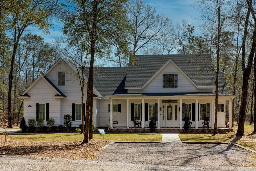 Jay, FL - A hunter's paradise. 18.09 acres full of wildlife along with a hunting food plot with shooting house, 1 mile walking/ATV trail, walk-in pump house, both large oaks and pine throughout, and stunning 2115 sqft home. The special features extend to the 2,760 sf foot barn with 16 foot high lean to on both sides, 50 amp RV hookups, LED lighting, and outlets every 6 feet in shop/barn. This is the ultimate man cave/she shed or bring all your toys, boats, RV, etc. The large front porch welcomes you with a hanging swing. Glass triple transom doors are inviting and let in plenty of natural light. Once inside youll love the open concept that lets you look all the way out to the oversized back porch with four ceiling fans. 3829 sqft under roof includes a chef's kitchen with gas range, oversized island, walk-in pantry, stainless appliances, granite, pendant lights, and adjoining eating area. The home offers three large bedrooms with walk-in closets, three full baths, and open concept kitchen and living. The large owners suite joins the double vanity tile bath with separate soaker tub, tiled shower, via a custom built barn door and has his and hers closets with laundry included. The owners suite also opens to the oversized covered back porch with 4 ceiling fans wood-burning fireplace that is perfect for watching the sunset on cozy evenings. There is a separate dining or office area at entry and a bonus storage room above the side-entry oversized/deep two car garage. The custom build includes brick and hardi-board, energy efficient HVAC systems, upgraded lighting and shutters, surround sound both inside and out, sprinkler system, tankless gas water heater, spray foam insulation, alarm system, 10 & 11 ft ceilings throughout, 8 ft doors, crown molding, two fireplaces, LED lighting, hurricane bolts, wood flooring, tile/concrete coating on all concrete surfaces under roof and granite throughout. 2 miles north of Chumuckla crossroads, 15 minutes to 5-points in Pace.