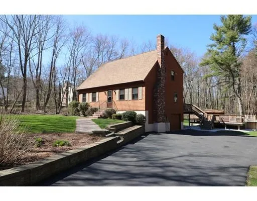 Private, Peaceful, & Perfect is what you'll find in this Scenic Setting on almost 1.5 Acres. This 2200 sq' Sunny and Bright Cape with Garage has an Outdoor Haven everyone will Enjoy. Sit on the 2 Tier Easy Maintenance Composite Deck, Splash in the Above Ground Pool, or Toast Marshmallows around the Custom Built Stone Fire Pit. Set up the Yard for Outdoor Games....it will all fit with room to spare. Fabulous Oversized First Floor Family Room with Gleaming Cherry finished Hardwoods, Living Room with Brick Fireplace, Eat-in Kitchen, 2 Full Baths, A Generous sized Master, and a Spacious Finished Basement. City Water/Sewer. Stone walls, Well for irrigation, Patio, Gardening Shed, and Nestled in One of Raynham's best locations for convenience to Highways, Shopping & Schools. Don't miss out...This Gem won't last!! First OPEN HOUSE 5/5 11-1:00 p.m.