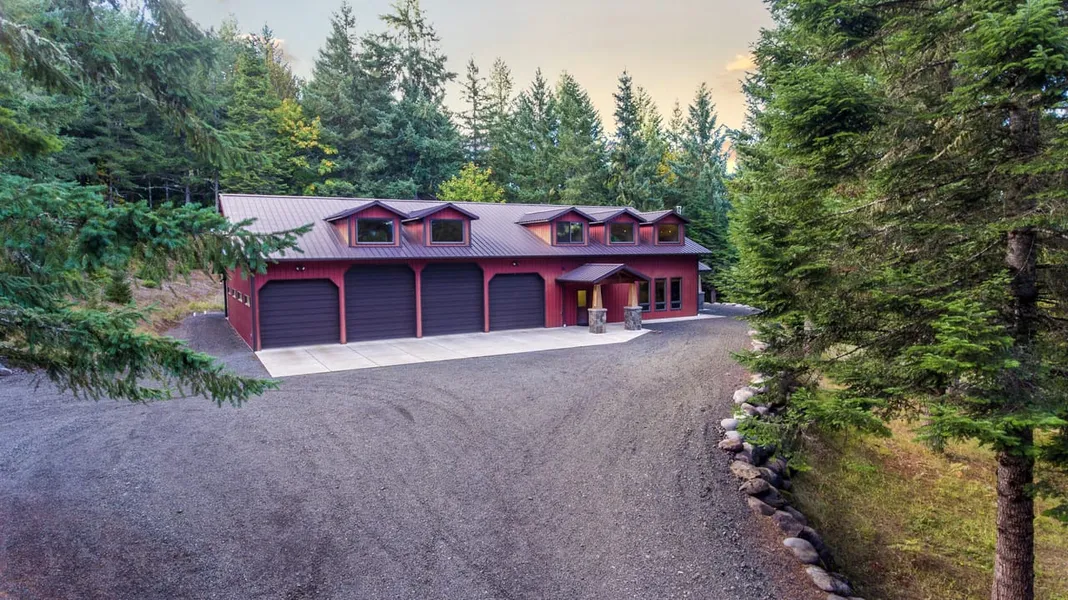 Main Home/Barndominium: Youll be amazed at the lodge-style craftsmanship and the comfortable feel of this home. Custom lighting, natural wood and stone finishes, and rustic stained cement floors offer warmth and welcome.