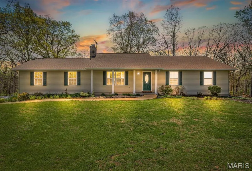 Enjoy peaceful country living in this charming 4 bd/2 bath ranch-style home situated on 5 wooded acres! This beautifully maintained property offers the perfect blend of comfort and space. Upon entering you will notice the beautiful wood burning FP. The kitchen boasts new countertops and a breakfast nook. The primary suite has a private bathroom and ample closet space. Newer carpeting in bedrooms 2025. Roof replaced in 2024. Basement is a blank slate ready for you to finish. Step outside the french doors in the dining room to take in the mature trees from your deck. With plenty of room to roam, this property is ideal for those seeking privacy and tranquility while still being close to local amenities. Chickens have now been approved by the HOA.