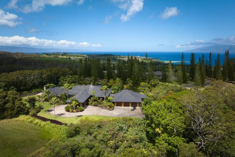 Welcome to an extraordinary sanctuary of privacy and luxury in Kapaluas prestigious guard-gated community of Plantation Estates, with security provided seven days a week. Recently and extensively renovated inside and out, this 2.18-acre estate has been transformed into a modern tropical masterpiece. Bordering the 15th and 17th holes of the world-renowned Kapalua Plantation Golf Course, the home offers a front-row seat to the PGA Tour season's calendar-year opening tournament, The Sentry, and an unparalleled indoor/outdoor lifestyle. As a property owner in Plantation Estates, enjoy exclusive access to a private skybox suite overlooking the 18th green during the tournament. The residence showcases impeccable craftsmanship, state-of-the-art upgrades, and refined details throughout. Inside, discover 64 feet of motorized pocket doors that disappear into the walls, seamlessly blending the interior with over 2,000 square feet of covered lanais. The open floor plan features soaring 12-foot ceilings, two elegant living spaces, a dining area, a private office, a wine cellar, and two fireplaces. The gourmet kitchen boasts double islands, a new 48 Wolf range, and a Wolf grill at the outdoor bar, ensuring effortless entertaining. The luxurious primary suite is a true retreat, offering two private lanais - one ideally suited for adding a sauna and cold plunge pool to create the ultimate relaxation space. Two additional guest suites, all with 10-foot ceilings, provide ample accommodations for family or visitors. Outdoors, the estates transformation is nothing short of spectacular. The completely renovated pool now features a grotto, two water slides, a 7-foot waterfall with a jumping rock, and an adjoining spa, creating a resort-like atmosphere. Hundreds of strategically placed landscape lights illuminate the lush grounds, koi pond, and tropical gardens, turning the property into a breathtaking paradise after sunset. The fully automated Savant system enhances the experience, providing control over nearly every aspect of the home, from lighting and sound to the 10 tiki torches and more. Additional features include a sprinklered orchard with over 40 fruit trees, an inviting outdoor shower, a spacious three-car garage with a home gym, and ample storage. You can take your own golf cart to easily access nearby world-class beaches, the Kapalua Bay Course, and the Kapalua Resorts exceptional dining and amenities. This extensively renovated home offers unmatched privacy, luxury, and modern sophistication. A must-see to truly appreciate its beauty, resort-like atmosphere, and seamless blend of indoor and outdoor living.