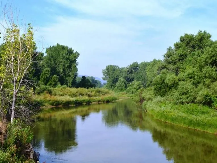 The Ball Ranch covers a distance of eleven miles from north to south, and is three to five miles wide. Five drainages along the many miles of Tongue River frontage collect water during spring runoff and periods of heavy rain and flow to the river. The river is lined with mature cottonwood trees, shrubs and irrigated fields making for ideal wildlife habitat. The river bottom, at an elevation of 2750 feet, gives way to miles of open prairie that rise to hills and ridges dotted with pine trees; the highest elevation on the ranch is 3200 feet. Trembling Butte, a local landmark is located near the center of the ranch.
