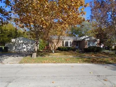 Brick ranch with 3 bedrooms, 2 bathrooms, living room, kitchen, unfinished basement, 2 car detached garage.