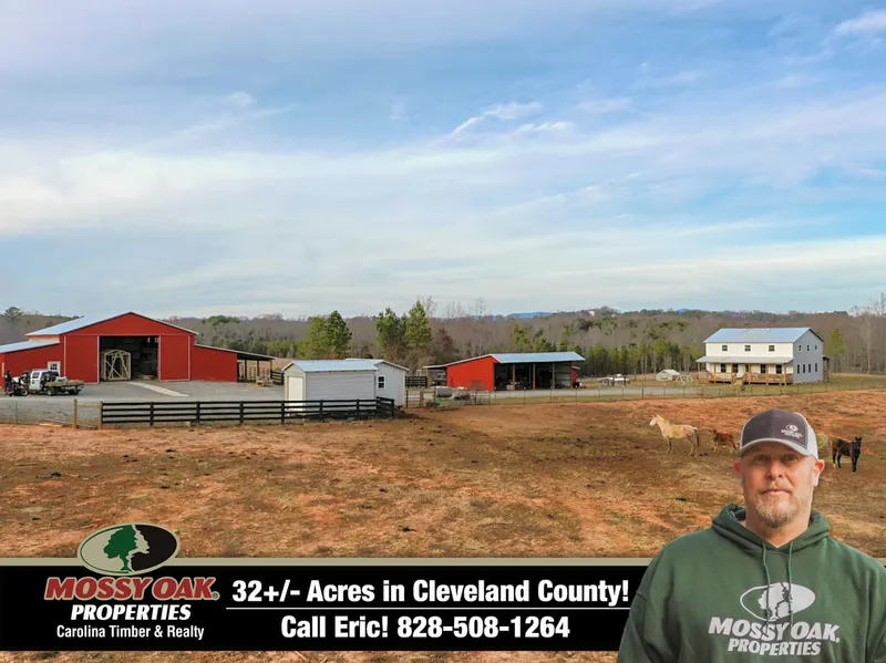 32+/- Acre farm within an hours reach of Charlotte, Hickory, Asheville or Greenville SC. 18 acres of cleared land with 14 acres of woods, trails and a creek to explore. Property has a large 2-story dwelling (2880 sqft) with open spaces and finished without electricity or conventional plumbing. It is well insulated with newer vinyl double-hung windows. There is a 4000 sqft enclosed metal shop/building on concrete with a 14'x60' lean-to as well as a 24'x40' shed with a 12'x40' lean-to behind it. There is also another 600sqft finished building that was used as a community school on the property. Most of the property is fenced in with welded wire/topped with barb wire and divided, with a farm-gated entrance. Call Eric Fowler today to schedule a showing at 828-508-1264