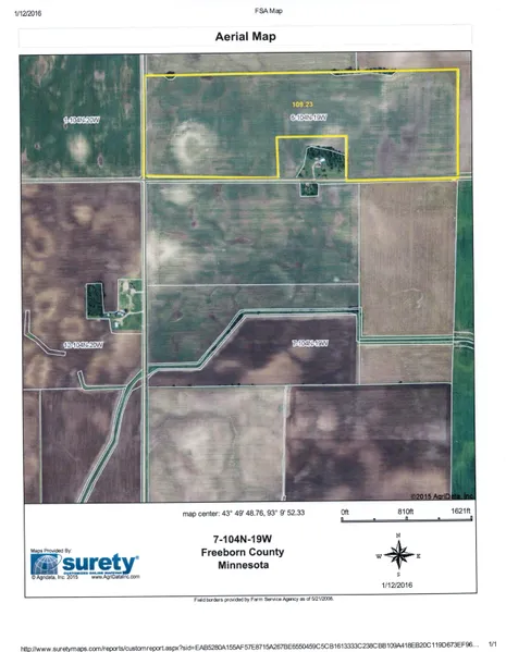 224 Acres located in Sections 6 & 7 of Newry Township ~ Freeborn County, MN. Tract 1 is 106 Acres & Tract 2 is 117 Acres. CPI's are an excellent 87 & 91. Tract 1 has 106 Cropland Acres & Tract 2 has 110 Cropland Acres.