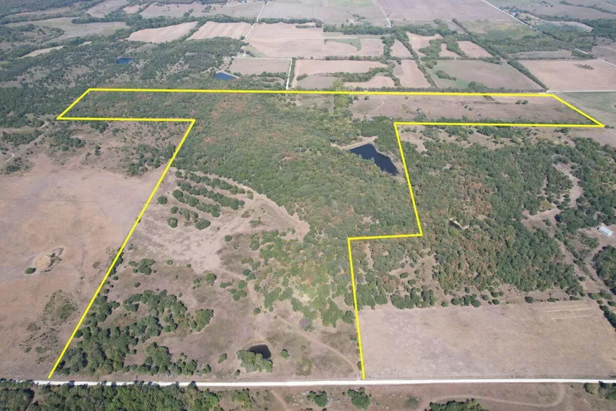 PROPERTY DESCRIPTION: 224 acres located south of New Albany and southwest of Fredonia in Wilson County, Kansas. This diverse tract of Kansas land has everything you could ask for in a recreation property. The 2 1/2 acre lake is nestled in the hills with trees all the way around it. The clear water lake has flooded timber and excellent habitat for game fish that includes a good population of Largemouth Bass and Bluegill. In addition to the lake, there are 3 other ponds on the property. Improvements include an old barn and silo. Stacked native limestone fences can be found at different places on the property, a time capsule captured from generations in the past. Access is provided by township gravel road along a portion of the north boundary, and township gravel road along the south boundary. Multiple small creeks and draws run through the property offering live water during wet times. Utilities available include electric along the south portion of the property. Great opportunity to Invest in Southwest Kansas land!
