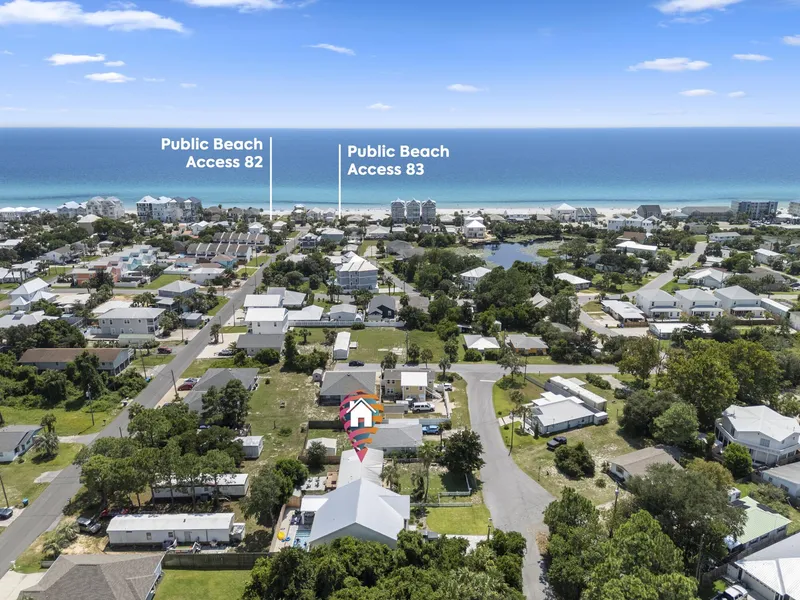 Step into a beautifully renovated coastal retreat just 3 minutes from public beach access and moments from the best dining, entertainment, and Pier Park. This bright, spacious home features elevated ceilings, wood beam accents, and new LVP flooring throughout. Enjoy a brand-new front deck, updated bathroom vanities, and two sliding glass doors that open to an entertainer's dream backyard-complete with an 8-ft privacy fence, large back deck, fire pit, and outdoor shower. Inside, three generous bedrooms offer oversized windows and abundant natural light. Outside, a convenient storage shed provides extra space for tools and gear. Fully updated and perfectly positioned for beach living or short-term rental income, this home delivers comfort, style, and unbeatable convenience. Move-in ready.