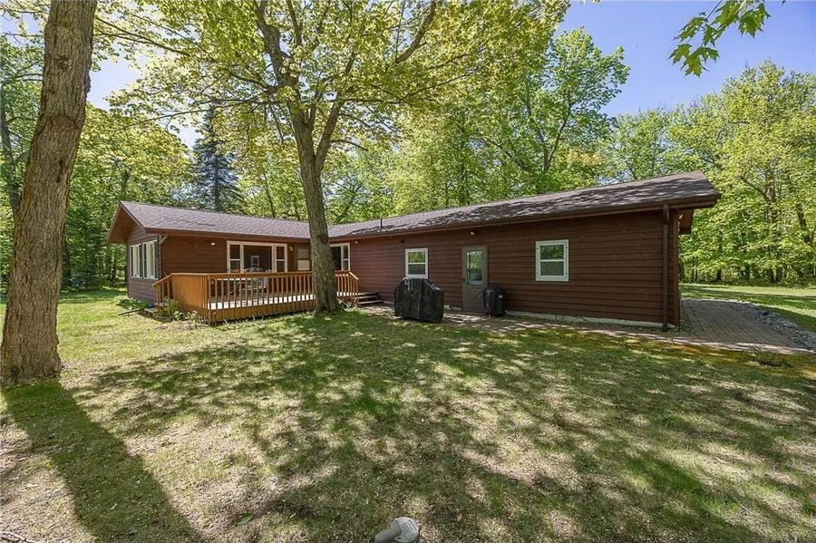 Welcome to your own lakeside retreat, tucked beneath mature trees and set on over 2 acres with 200 feet of shoreline on the peaceful and scenic Blackwater Lake. Step inside and you’ll be greeted by a warm, open atmosphere with wood floors, half-log walls, and a vaulted wood ceiling that soars above the family room. A stone fireplace with built-in wood storage creates a cozy focal point for gatherings, while expansive windows frame views of the surrounding landscape. The kitchen offers generous cupboard space and a convenient pass-through to the adjacent dining room which is ideal for entertaining or everyday living. With its own fireplace, the dining room is versatile enough to become a game room, lounge, or creative space. Both bedrooms are inviting with one featuring a walk-in closet. The home also includes extra storage space, a washer and dryer, and an attached garage with a bonus workshop area, great for projects, gear, and seasonal toys. Outside, a spacious yard gently slopes toward the lake, offering plenty of room for outdoor activities, garden plans, or simply relaxing on the deck as you take in the water views. This is a rare opportunity to own a private slice of Blackwater Lake with space to spread out, unwind, and make memories that last for generations.