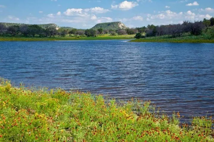 Hardwoods include liveoaks, cedar, mesquite, elm and Spanish oak, with a fair amount of drought-dead cedar found in some areas. Native tall grasses and turfs are in good shape in most areas, and abundant wildlife includes whitetail deer, exotic deer, turkey, hogs and varmints. Dove are sometimes found in huntable numbers, and waterfowl often populate the large lake.