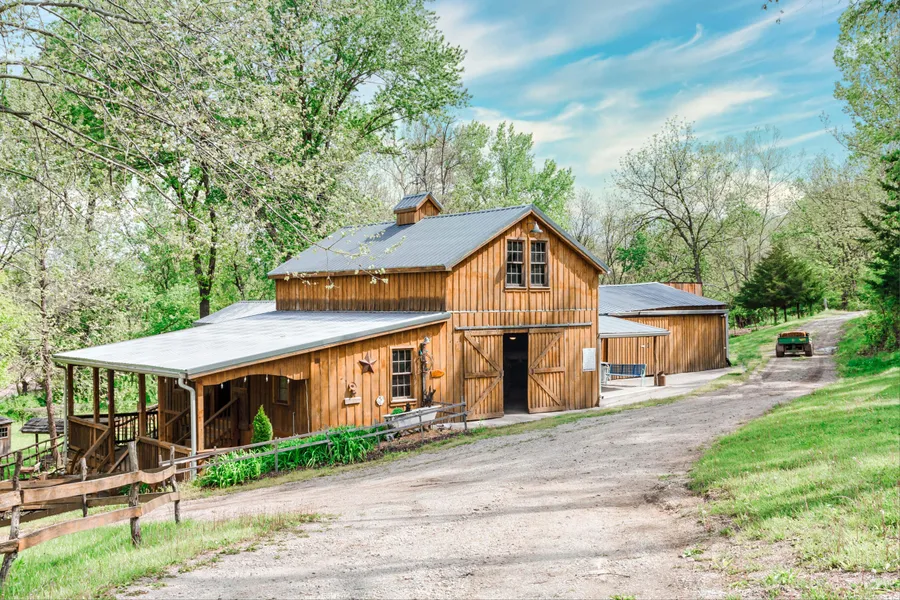 Welcome to the Crooked River Farm! This truly is a dream property for somebody who wants to own a rural wedding venue. Encompassing over 100 acres on the Crooked River, this award-winning venue boasts a level of character and rustic charm that puts it in a league of its own. The full appeal of the Missouri countryside is on display as you explore the property, from the peaceful riverfront setting with its fertile bottomland to the quaint cabin on the oak-covered hills. The diverse landscape hosts a wide range of wildlife viewing or hunting opportunities. The current owners have a verbal cash rent agreement of $178/acre for 26.84+/- acres on the east side of the river. There are an additional 12 +/- acres on the west side currently in hay production that could be converted into tillable acres. You could either retain the hunting rights or pursue the existing written hunting lease agreement for $2,200/year into future seasons. The mix of river bottom, crop fields, and upland habitat make for prime deer and turkey opportunities. There are mowed trails throughout much of the property and several others that can be re-established. The Crooked River provides a very defined boundary for much of the north and east sides of the property. A couple of small ponds on the terraces of the hay ground provide an additional water source for wildlife. The upland timber pieces have a good variety of tree and shrub species including some nice young oaks that have potential to be very productive for years to come. A rustic cabin constructed from lumber harvested on the property sits on the hill overlooking the river bottom. Wiring has been installed for solar power to be hooked up and there is an outhouse within a comfortable distance. The parking area below the cabin could serve as a site for a second cabin if you wanted to maximize the revenue potential of this feature.