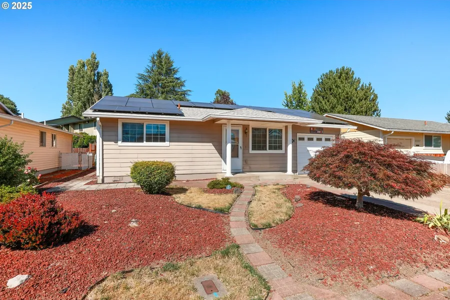 Beautiful well kept home with an open and spacious feel! large Primary suite with vaulted ceiling, walk-in closet, full bath, storage & skylight. The Sun room is the perfect place to enjoy the outdoors during inclement weather and provides extra natural light. Home features a Large Laundry/Bonus Room, Solar Tube lighting, Pull out drawers in cabinets, Garden window and also has solar power to keep your electric bills low! The Patio and yard are welcoming and has a raised garden bed with plenty of sunlight. This is an active 55+ Community with Golf Course and a wide variety of activities and amenities!