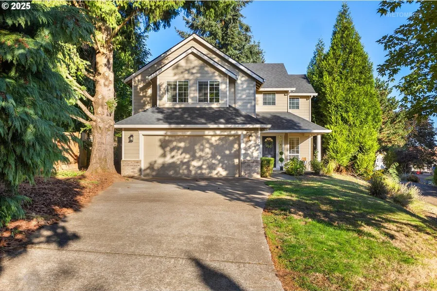 Perched at the edge of a quiet cul-de-sac, this Sherwood home lives large featuring a floor plan designed for everyday living, a great backyard and a brand-new roof! Just inside, find the dramatic two-story entry where soaring ceilings and walls of windows fill the vaulted living room with natural light. A cozy fireplace creates the perfect anchor for entertaining or just a peaceful day at home. The kitchen is a true hub with backyard views, generous counter space, pantry storage, and an eat-bar perfect for quick bites and entertaining. All appliances stay, along with the washer and dryer in the main-level laundry. The thoughtful floorplan blends function with charm, offering seamless flow between the living spaces. A powder bath and convenient office/study nook with built-in cabinetry complete the lower level. Upstairs, retreat to the primary suite with calming tree views, a walk-in closet, and a spacious bath offering dual sinks and a walk-in shower. Two additional well-sized bedrooms, each with its own reading nook, and a hall bath with a tub-shower combination complete the upper level. The fully fenced backyard is ready for relaxation and play, with a patio, raised beds, tool shed, and plenty of space for gardening or pets. Added comforts include central A/C and an attached two-car garage. Located in a coveted Sherwood neighborhood, you'll enjoy small-town charm, tree-lined streets and community spirit with easy access to top-rated schools, Old Town shops and dining, local wineries, parks, trails, and commuter routes. It's the perfect entry into the Sherwood lifestyle; comfort, flexibility and a welcoming community!