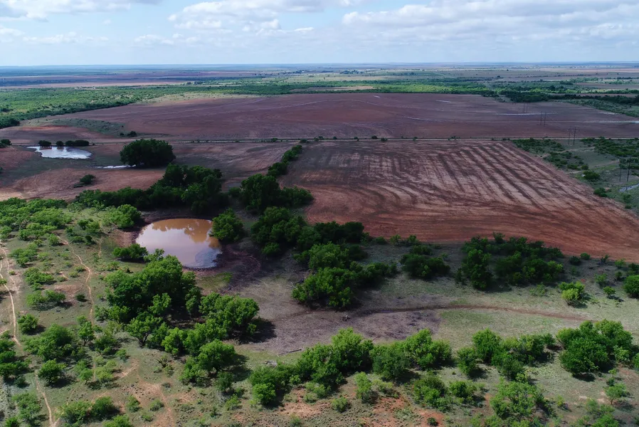 The ranch has approximately 24.6 acres of dry land cultivation on its south side, with the balance in native pasture. The cover is primarily mesquite trees, but some hardwoods are around the water tank and line the draw. This water tank can hold approximately one surface acre of water when full. It is fed by a deep draw from the north. Another smaller pond is on the east side.