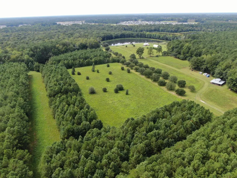 This tract is not just for developersits also an ideal spot for a private homestead, farm, or hunting and fishing retreat. Tract already has a home with 1,650 sqft under the roof and a 1,600 sqft double garage shop with a conditioned kitchen and bathroom area along with an 8 acres of ponds and a large covered boat dock. If their was ever a tract with turn-key options, this one would be it! The land boasts diverse topography and timber, with the front portion covered in mature loblolly pine and oak with the rear of the property covered in massive and historic, old growth red and white oaks and five-century old cypress trees that provide unique character and truly beautiful natural elegance.