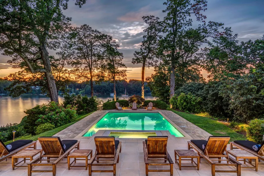 This Grand French Manor, curated with imported materials from Bourdeaux, stands proudly on the banks of the Severn River just minutes away from downtown Annapolis and the Chesapeake Bay. Deceptively ample in scale, and tucked away on a quiet dead-end street in the premier residential enclave of Wardour, one of Annapolis' most sought-after neighborhoods. This trophy home is in a league of its own, achieving unparalleled scale and quality which seamlessly merges into the backdrop of an already exceptionally rare 1.6-acre expanse with 185' of private water frontage. Beyond the gates sits a circular arrival court with a beautiful central fountain and three-car garage. With unsurpassed attention to architectural details, this magnificent home welcomes guests to a sun-drenched foyer with soaring ceilings centered by breathtaking views of Weems Creek and the waterside pool area. Spanning 10,000 square feet with seven bedrooms, five full baths, and two half baths - the newly updated interior includes dramatic entertaining areas, complete with three fireplaces, 700 bottle wine cellar and stunning water views from almost every room. Interior design inspired by former Ralph Lauren stylist, Isaac Mizrahi, Calvin Klein, and Donna Karan designers. The exquisite NEW chef style kitchen is appointed with "Waterworks" ultra-premium cabinetry and hardware, massive center island and commercial grade appliances. The covered terrace which overlooks the NEW 25' x 50' pool and in-ground hot tub is the perfect place for al fresco dining while enjoying glorious sunset views. This extraordinary residence is surrounded by classic gardens with paved areas ideal for outdoor living and entertaining. Strategically placed landscape lighting illuminates the double gated entry, circular drive, sparkling fountain and waterside lounge area, setting an impressive stage for the elegance within. The deep-water dock (8ft water depth) is equipped with a 40,000 boat lift, dingy lift and a floating pier, perfect for the boating enthusiast plus the Weems Creek setting provides quick access by boat to the Annapolis Harbor and the Chesapeake Bay. Conveniently located to access Downtown Annapolis, head over the Bay Bridge to the Eastern shore or jump on Rt. 50 to get back to Washington, DC and just a few short blocks to West Annapolis' charming commercial district's restaurants & shops. This true "Legacy" property offers the complete package: privacy, convenience, security, beauty and comfort. To explore the property without leaving your home, be sure to view the HD Video Tour.