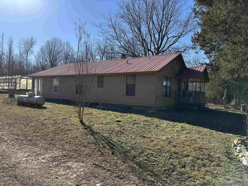 Home and 40 Mostly timbered acres along blacktop road. 2 bedroom 1 bath, wood heat and window air. well water, propane for water heater and cook stove. 2 green houses, detatched garage car cover, shed, water valve and a septic system. Property could be used for farming, hobby, or used for hunting.