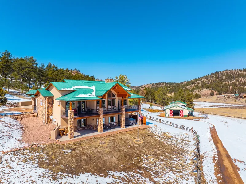 Scenic mountain custom home uniquely situated on a beautiful 35- acre parcel in Teller County, Colorado. Framed by majestic rock formations and tall Ponderosa Pines, this 3956 square foot timber and stucco home along with 1728 sq. ft. 4 stall barn will be sure to satisfy your dream of owning a private getaway in the Rocky Mountains of Colorado. This mountain property is located in the scenic Slater Creek Valley just 3.5 miles off paved Teller County Road 11.
