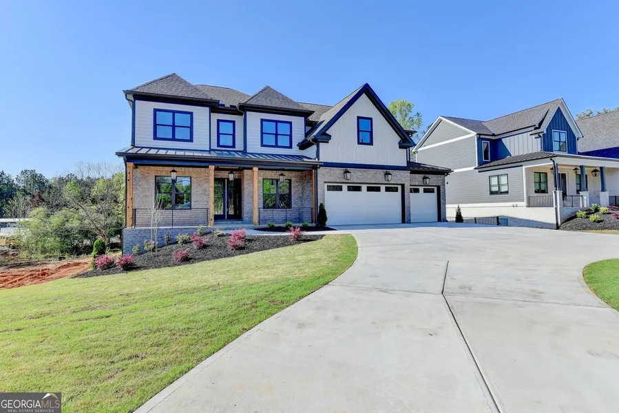 MOVE-IN READY and masterfully crafted, this exceptional custom estate is located in the prestigious Buford City School District, nationally recognized for academic excellence. Offering approximately 4,600 square feet of impeccably designed living space, this 5-bedroom, 5.5-bathroom residence blends timeless architecture with elevated modern luxury. Soaring 10-foot ceilings on both levels create a dramatic sense of openness, while the expansive floor plan is thoughtfully designed for both grand entertaining and refined everyday living. The gourmet chef's kitchen serves as the heart of the home, showcasing upgraded quartz countertops, custom-built cabinetry, a generous walk-in pantry, and a fully equipped prep kitchen for seamless hosting. The owner's suite is a true private sanctuary, featuring a spa-inspired bath and custom-designed dual closet systems. Designer lighting, premium flooring, upgraded secondary baths, and curated high-end finishes enhance every space. Outdoor living is equally impressive with a covered rear porch and fireplace overlooking a level, pool-ready backyard ideal for creating a private resort-style retreat. Additional features include an oversized three-car garage designed to accommodate larger vehicles, a built-in safe room, integrated surround sound in the kitchen and covered patio supported by a centralized data closet, and three exterior Ring security cameras. A rare opportunity to own newly constructed luxury in one of Buford's most sought-after locations.