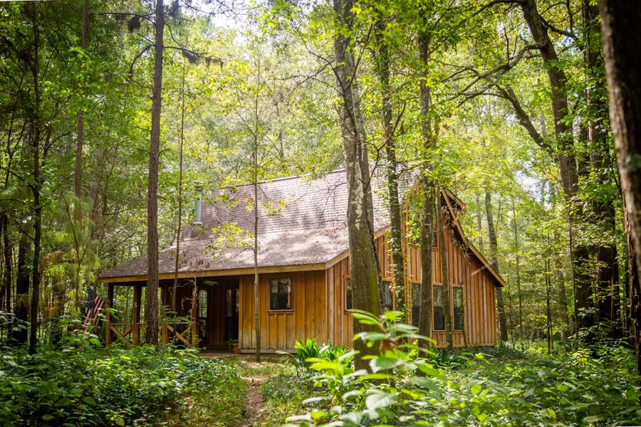 This property features a charming cedar home with 1 bedroom, 1 bathroom, loft, and adequate kitchen, dining, and living space. The interior features all wood doors with pine stairs and a railing to the loft. The focus was to bring the outdoors in with natural finishings and porcelain floors to resemble the woodland soils. The back porch is screened with a view of the untouched and natural forest. You can expect to see whitetail deer, wild hogs, foxes, and various other East Texas wildlife. Native soft and hardwoods adorn the property cedar, red oak, white oak, hickory, holly, post oak, cherry, pine, sweetgum!