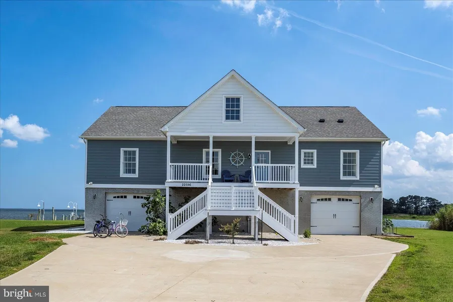 Experience the tranquility of waterfront living in this three-year old coastal contemporary home. Nestled on .60 acres along the serene shores of Rehoboth Bay, this carefully planned, elevated 5-bedroom, 3.5-bathroom residence has panoramic water views and over 200 feet of accessible water frontage. This home embodies the essence of coastal living, with a private dock, boat lift, 64' rear deck, jetted spa-pool, outdoor shower, and fully enclosed foundation garage with room to park all your toys! Built in 2022, the home features an inviting open floor plan that seamlessly connects the living, dining, and kitchen areas, perfect for both entertaining and everyday living. The entire rear of the home faces southeast, overlooking the Rehoboth Bay, and nestled on a private cove next to a protected wetland sanctuary. The unobstructed, expansive vista has sight lines all the way to the Indian River Inlet Bridge. Flooded with beautiful natural light and directly facing the picturesque postcard setting, the living room and dining room are open to the heart of the home, the kitchen. Adorned with upgraded granite countertops, stainless steel Fridgidaire and LG appliances, and an island sink positioned with views of open sky and sparkling water, ordinary tasks are performed with enjoyment. The spacious adjacent dining area provides the perfect spot for morning coffee, sunlight drenched brunch, or a dinner party with a stunning backdrop! The living area features vaulted ceilings and is equipped with two ceiling fans. The open living area is large enough to host game day, a cocktail party or movie night (the current pool table does not convey). Natural light floods the spacious, southeast facing primary bedroom, which also boasts bay front views and glass door access to the open deck and spa-pool. Imagine waking up to tranquil open water, seagulls in blue skies and not a neighbor in sight! The en-suite bathroom features a walk-in shower, upgraded tile, granite topped double vanity and an oversized free-standing soaking tub. Two more bedrooms off the living area share a Jack-n-Jill bath with walk in shower, and both the laundry and powder room are located off the generous entry foyer. Upstairs, each of the guest rooms has stunning views of the surrounding seascape and unspoiled wetland preserve. An attic provides additional storage space; every inch of this home is utilized efficiently. Step outside to your private oasis, where your guests may never leave the elevated perch of the 64' sundeck. The pool-spa combo allows quiet relaxation, or multiple current settings for lap swimming. Glide into your morning swim, or soak with your friends for happy hour at sunset. With 203 feet of water frontage, the property offers direct access to the private cove, allowing endless nautical activities and picturesque sunsets. Ready the boat for an evening across the bay in Dewey or Fenwick, host a lawn game tournament, or float lazily in the cove, listening to the birds at twilight. The property is bordered by a protected natural area and is fenced on three sides to the bulkhead, so let the pups run free. The exterior of the home offers a poured concrete drive and parking area, rear exterior access from the garage level, a boardwalk along the bulkhead for crabbing and fishing, and the structure is clad in low maintenance hardie-plank siding. The property is equipped with a water treatment system for the private well. Although currently on a temporary septic, the home will be linked to public sewer by late July, 2025. This private enclave is not just a home; it offers a coveted, casual coastal lifestyle. With navigable waters just steps from your residence, you can indulge in all that waterfront living has to offer - in your own private oasis. Embrace the quintessential coastal lifestyle and make this bayfront home your reality today.
