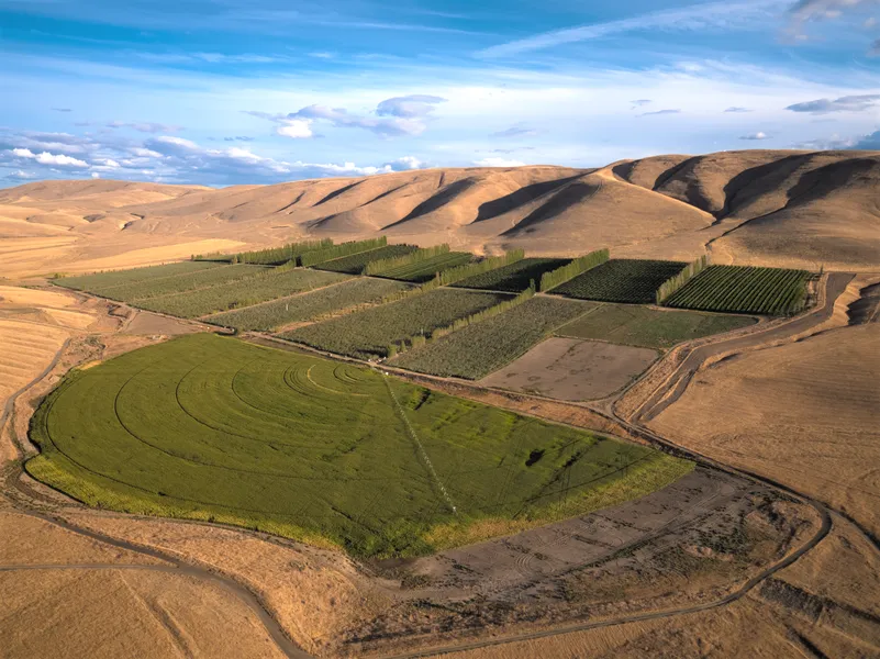 Located at the upper end of the Moxee Valley in Yakima County, WA, this diverse, irrigated asset consists of permanent crops with a variety of apples and cherries, as well as modern, center-pivot row crop ground - suitable for potatoes, onions, sweet corn, alfalfa, timothy hay, and dozens of others. With an approximate elevation range between 1,750 feet and 2,150 feet, the property has been well planned and meticulously developed including 34 wind machines, as well as senior water rights (first in time, first in right), and is serviced by a network of six deep wells with interconnected main lines.