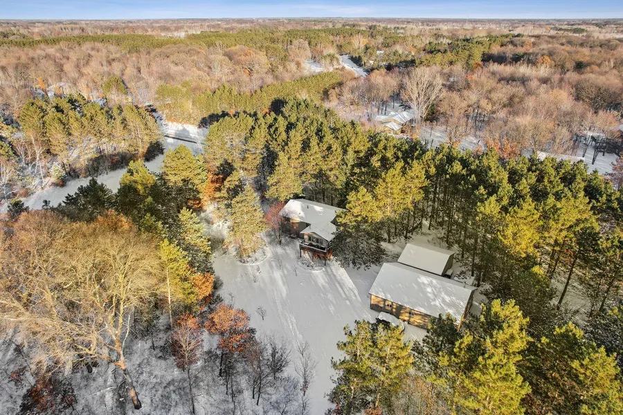 Rare find!! This beautifully updated home on two gorgeous wooded private acres has it all! From the wooded drive that leads you into your private haven, to the updated kitchen with granite counters and large island, inviting family room with windows on four sides (AND skylights!), gorgeous updated bathroom with walk in shower, new flooring, paint and light fixtures throughout, new range, dishwasher and microwave! The yard boasts apple, cherry, and pear trees, as well as grape vines and berries. The wrap around deck is prefect to watch the sunsets and wildlife in the yard. On cold winter days, enjoy the same views from the sun room with the cozy fireplace! Bring your toys to the AMPLE garage space with the detached garage and incredible shop! The shop is insulated, heated, cooled and has a huge loft for extra storage! If you are looking for a very well maintained home that feels like the north woods but is commuting distance to the cities, this is it! Welcome Home!