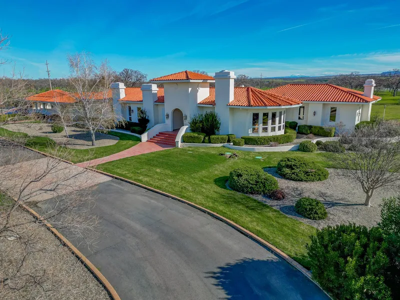 37 +/- acres situated on the west bank of the Sacramento River improved with Hacienda style home affording views and privacy thanks to the surrounding oak-studded hills and acreage. The custom 6,082 square foot single level home has 4 bedrooms, 4.5 bath includes three separate wings adjoined by the kitchen, dining room, great room and library. The home wraps around the built-in pool with multiple French Doors opening poolside. The home has been adorned with high-quality features and luxurious accents, including Honduras Mahogany flooring, doors plus the walls of the elegant library are mahogany lined; 12-foot ceilings throughout home, sided with large windows providing ample natural light and a spacious flair; 5 gold accented fireplaces, located in the dining room, great room, library, powder room and master bedroom. The spacious kitchen is accompanied with granite counter tops, an integrated refrigerator, electric stove top island, and ample cabinet space and storage. The Master Wing has a guest powder room with fireplace. The master bedroom suite is spacious with separate bathrooms, each with walk-in closets. Improvements also include 5-car garage, 31 Kw solar array and45kw propane back-up generator. Located in the upscale community of Surrey Village just a 10 convenient minute drive from central Red Bluff.