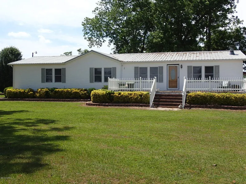 Beautiful serene country setting on over two acres. Front yard boasts over ten pecan trees. This large modular home has a newer gas pack and roof covering. Master bedroom features a private bath and walk-in closet. Large formal dining area is ready for all your family holidays. Eat-in kitchen with island seating has ceramic counters and back splash with oak cabinets. Enjoy your wide-open views from your kitchen window. Sip coffee while taking in the beautiful sunrise on the large front porch. Enjoy the spacious Carolina room just off the kitchen.
