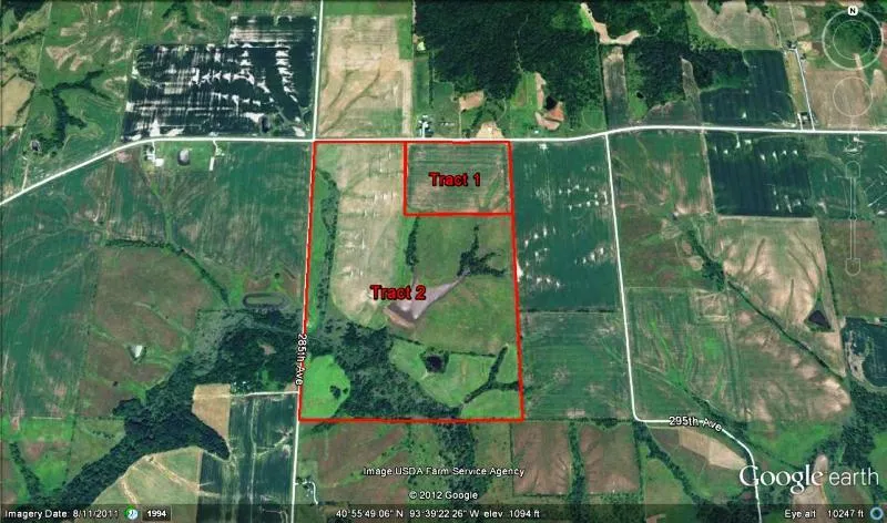 Research Parcel InformationTake Hwy 69 south 8 miles south to the Weldon Corner and then take county road J12 ( Weldon Blacktop) East 6 miles to 290th St. Take 290th North 1 mile to Benson St. Take Benson St. west 1/2 Mile to 285th St. Take 285th St. North 3/4 of a mile. The property starts on the east side of the road and ends at the corner of 285th St. and Mormon Trail.