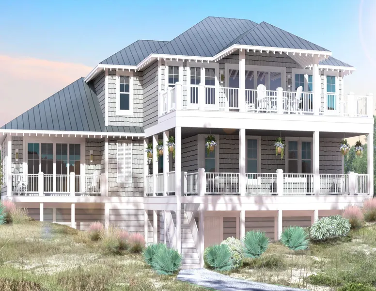 227 W Bald Head Wynd presents a rare pre-construction opportunity to secure a custom-built home in a fantastic island location. Perfectly positioned for breathtaking Atlantic Ocean views and spectacular sunsets, this home design checks all the boxes. Showcasing classic island architecture, the exterior features hardie plank siding paired with a standing seam metal roof—an enduring coastal aesthetic accented by layered outdoor living. Spanning more than 3,600 heated sq ft, the 5-bedroom, 4.5-bath design follows a reverse floor plan to maximize natural light and sweeping water views. The upper level will serve as the heart of the home, where an open-concept living and dining area flows seamlessly onto an expansive porch. Thoughtful details such as a walk-in pantry, wet bar, and generous storage elevate the space. On the main level, three private bedroom suites each include their own bath, complemented by a Jack and Jill bath shared by bedrooms 4 & 5 . Don't need 5 bedrooms? No problem - the 5th bedroom can be finished out as a kid's den or an office - buyer's choice. An elevator that serves all floors makes arrivals and departures a breeze! Buyers have the opportunity to collaborate with the builder on interior design, selections and finishes. This is an exceptional opportunity to secure a brand-new oceanview retreat at pre-construction pricing and be ready for Summer 2026! Equity BHI Club Lifestyle Membership.