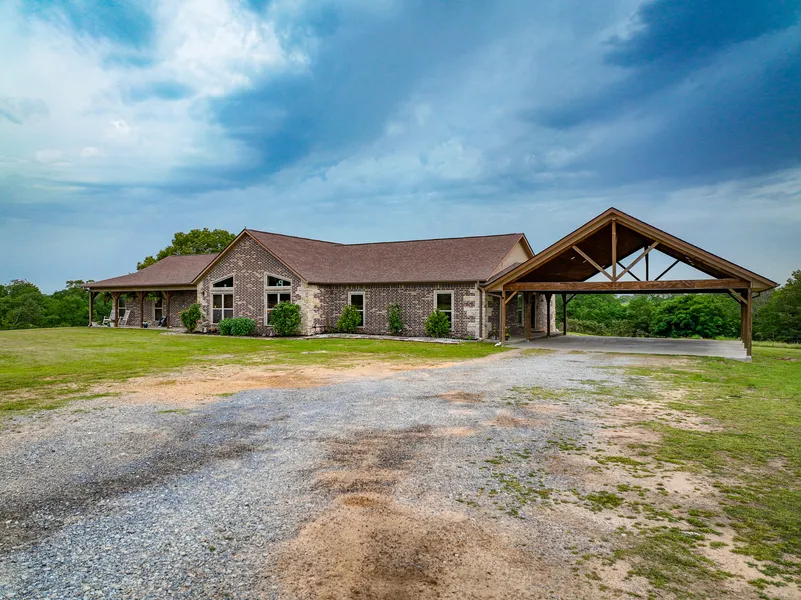Check out this unique property that's ready for you to call home! With 11 acres to explore, a pond, a spacious shop, and a generous 4,600 square foot house, there's plenty of room for everyone. This home features 6 comfortable bedrooms and 3 full bathrooms, one of the kids' bathrooms has a 3-sink vanity and 2 showers-perfect for busy teenagers! You'll also find a fun game room/living area for the kids, located away from the Primary bedroom for some added peace. The main living area is open and welcoming, combining the kitchen, dining room, and living room-ideal for family time and entertaining. The kitchen boasts custom cabinets and granite countertops that make meal prep a breeze. Outside, you can unwind by the pond or utilize the large shop for storage or projects. There's even a storm shelter in the backyard for added safety. Plus, you'll enjoy the convenience of a 2-car carport, making parking a cinch. This property offers the best of country living while being just a short drive away from downtown shops and restaurants. Whether you're looking for a family home or a great space for guests, this is the place for you. Come see it today!