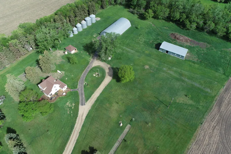 Perfect Hobby Farm nestled in the trees! Located west of Harvey and East of Martin, this farmstead offers everything one could want in a country home! Perfect setup for raising a few farm animals or to just enjoy the tranquility of rural living. The home has had many updates, and offers on the main floor the laundry, bedroom, kitchen, dining, living room, and a 3/4 bath! A spacious entry with heated tile floor, large closet, and space for freezers leads you directly to the laundry area, full bath, and kitchen. The kitchen is a dream! Newer custom cabinetry and a lovely set of quality appliances make meal preparation easy! The dining area is home to a large window and the patio doors accessing a huge deck, which is completely setup for a hottub! The living room sports a bay window and leads directly to the main floor bedroom. Upstairs one finds 3 bedrooms, a 3/4 bath and huge storage closet. The basement is home to the mechanical components - which includes a new furnace installed in 2020! - a root cellar and some nice storage. An antique range is there which has served as a backup heat source in the past. The yard is beautiful with mature trees, lovely deck for entertaining or relaxing, and plenty of space for gardening, games, and romping! Also included with this property is a 44x94 Quonset, 32x64 barn, a shed, and a detached single stall garage. Part of driveway is located on neighboring land. Right of way Easement included is for 99 years commencing 1-30-2001.